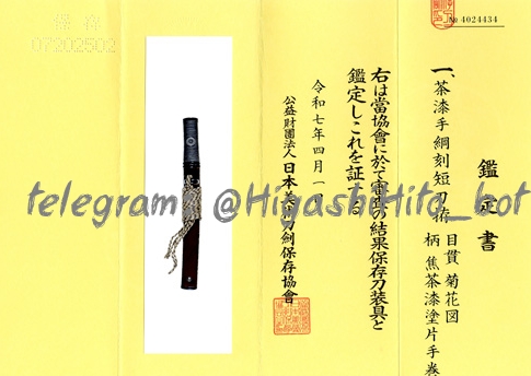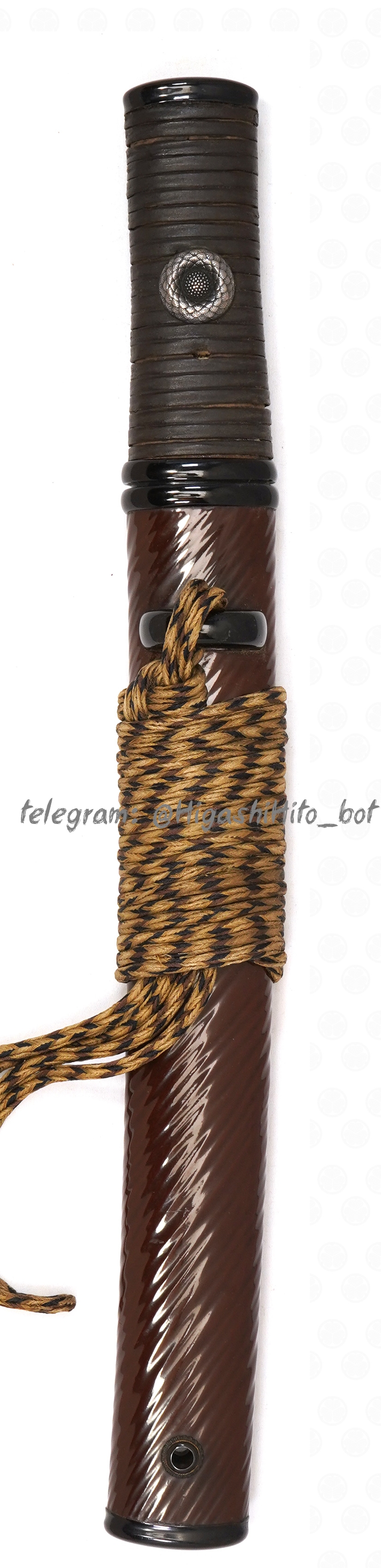 Этот обоюдоострый тант иллюстрирует превосходное мастерство сукзады во время периода EISH - Daiei. Сопутствующая коричневая лакированная резинка ручной резины Aikuchi Mounting Lating с позднего периода Эдо является изысканным и довольно редким полным набором, как внешне, так и внутри в отличном состоянии. (Увеличенные фотографии ПЕРЕДНИЙ НАЗАД Кошира)