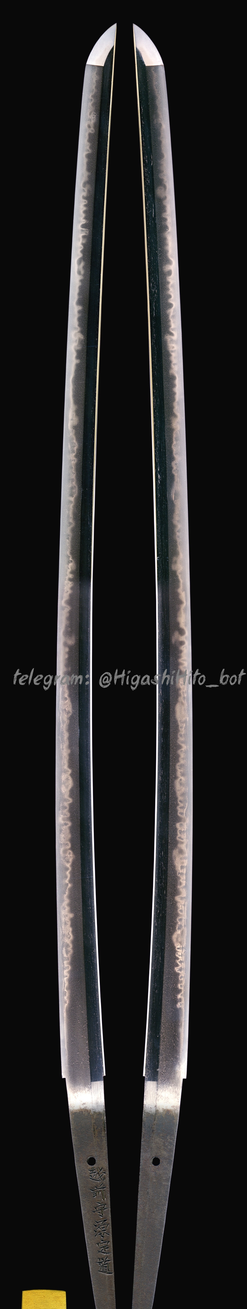 Субъект Катана, специально созданный в конкретной комиссии от воина Овари, который глубоко почитал боевой дух, особенно длинный, толстый и имеет тяжелое, мощное присутствие. Элегантный хамон, который начинается с Киото Якидаши и течет с изящной модуляцией, очаровывает зрителей, подтверждая его принадлежность к школе Мишины в Киото. Лезвие сохраняет энергичную, хорошо сохранившуюся форму и объем, а накаго разработала привлекательную патину возраста более 350 лет.